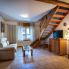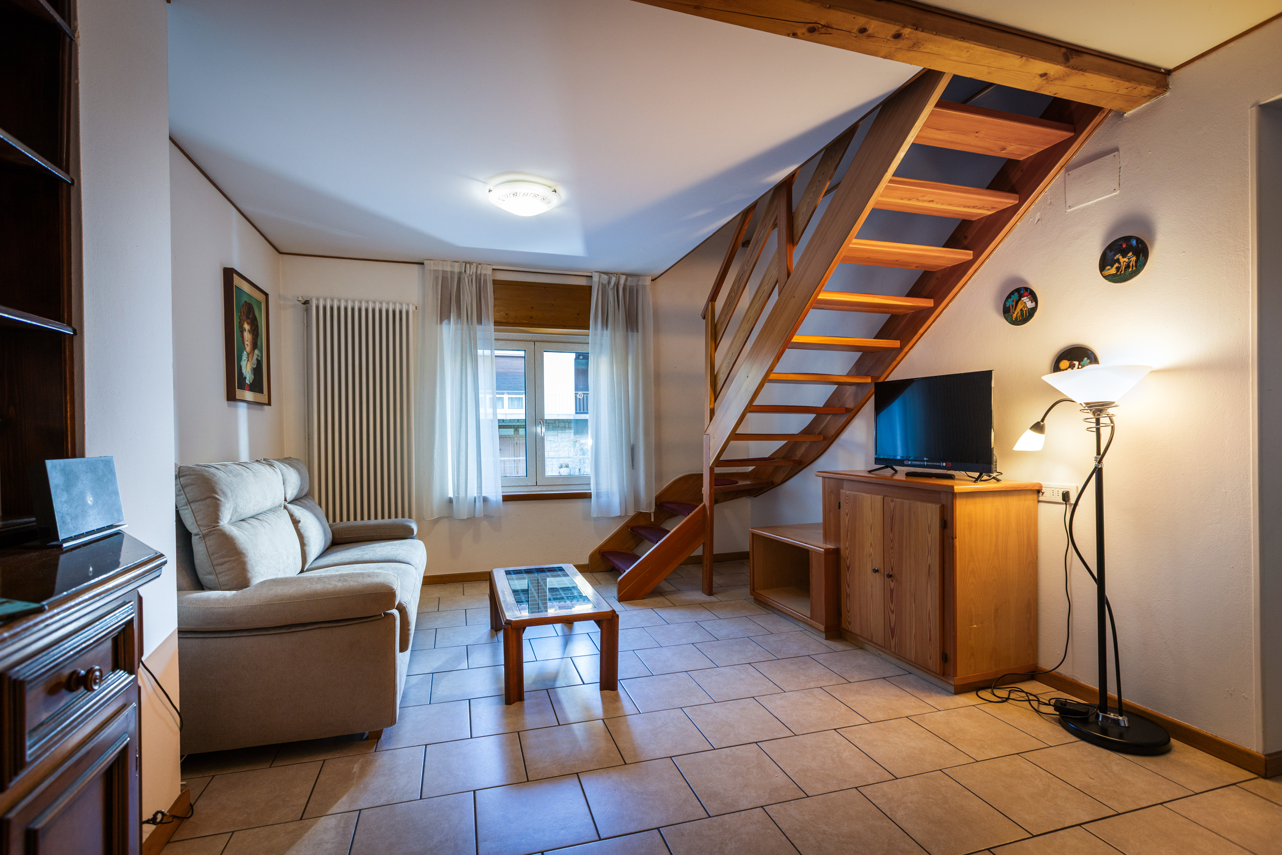 L’appartamento occupa tutti i due piani dell’immobile. Al piano terra si può trovare un piccolo ingresso che accede alla cucina completamente attrezzata dotata di ogni comfort, salotto, terrazzo, un bagno e un locale predisposto per la lavanderia, proseguendo sulle scale in legno si raggiunge il secondo piano dove sono collocate una camera matrimoniale, una singola ed un bagno.